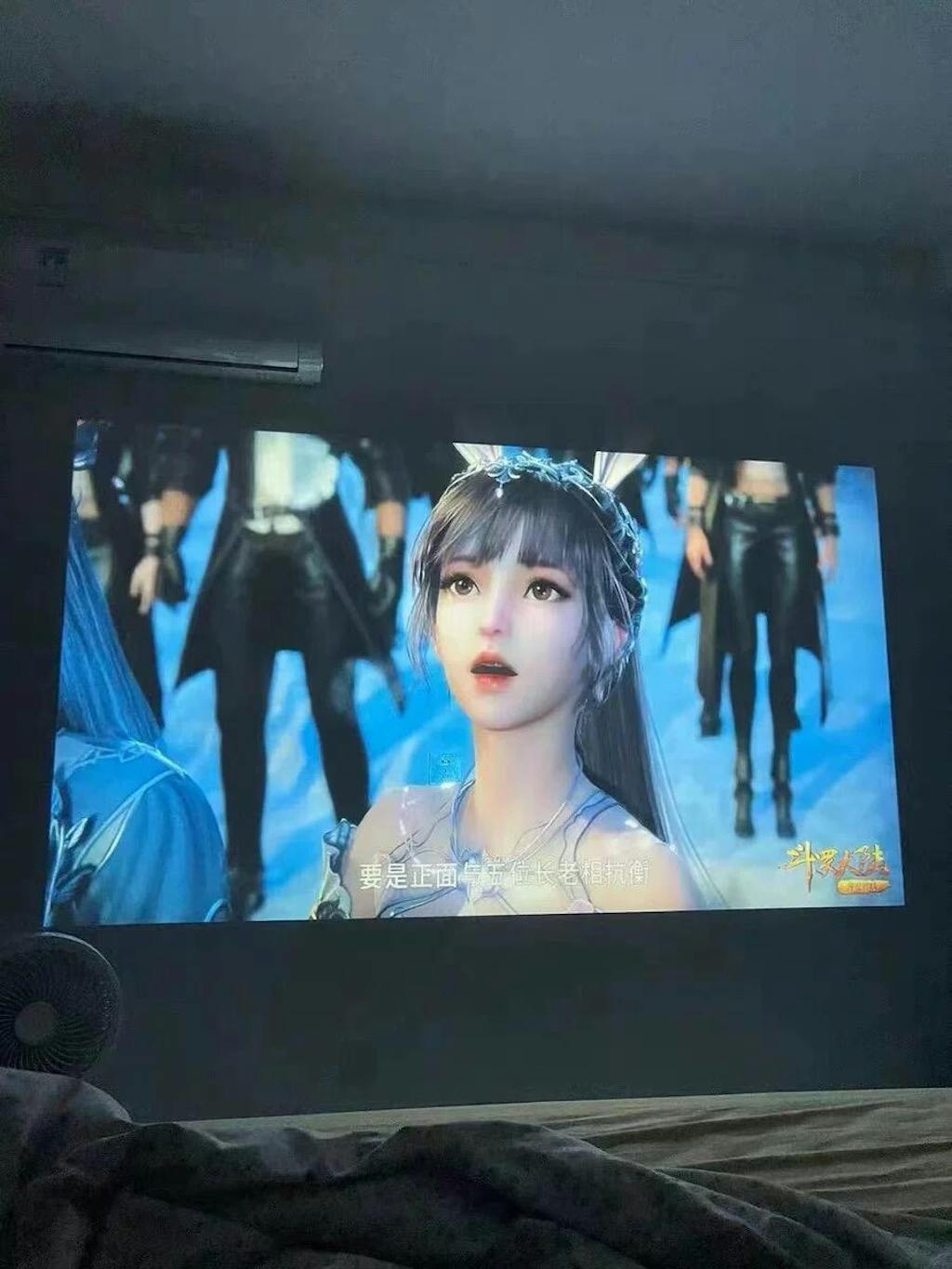 The effect is excellent, and projecting directly onto the wall doesn't affect the clarity. With this projector, I spend less time on my phone. Sometimes, after watching a movie, I don't play with my phone and just feel sleepy, which helps prevent insomnia. The large screen gives a cinema-like experience, and I can even watch it with the lights on.